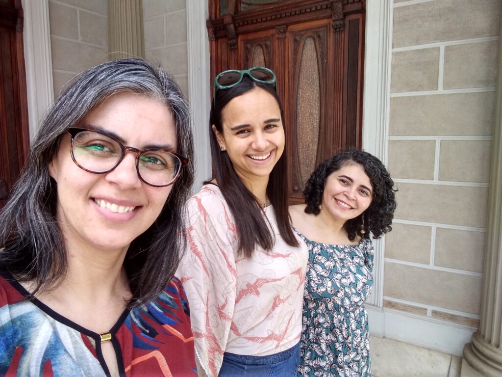 Ana Elisa Ribeiro, Maria do Rosário Alves Pereira e Renata Moreira em encontro na sede da Academia Mineira de Letras, 2021.